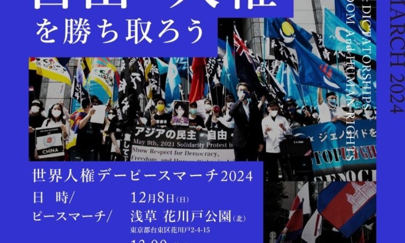 世界人権デーピースマーチ2024「独裁国家と戦い、自由・人権を勝ち取ろう」2024年12月8日(日) 13:00集合、14:00デモ出発浅草 花川戸公園(北)(東京都台東区花川戸2-4-15)隅田川公園解散主催:世界人権デーピ...